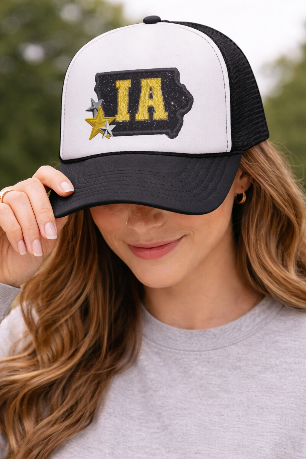 Busch Light Trucker Hat with Colorful Stars and Hearts Design
